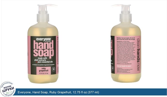 Друзья, если у вас есть отзыв/дополнение/комментарий/вопрос относительно Everyone, Hand Soap, Ruby Grapefruit, 12.75 fl oz (377 ml) - напишите его ответом в эту тему (это будет полезно всему сообществу в целом и вам в отдельности).