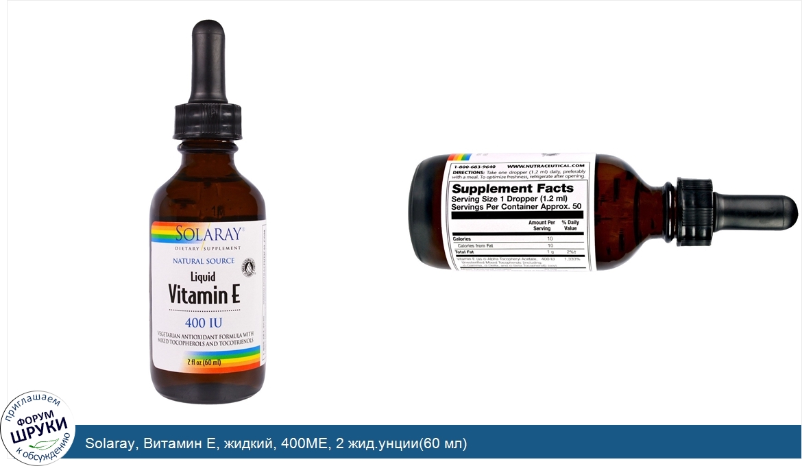 Друзья, если у вас есть отзыв/дополнение/комментарий/вопрос относительно Solaray, Витамин E, жидкий, 400МЕ, 2 жид.унции(60 мл) - напишите его ответом в эту тему (это будет полезно всему сообществу в целом и вам в отдельности).
