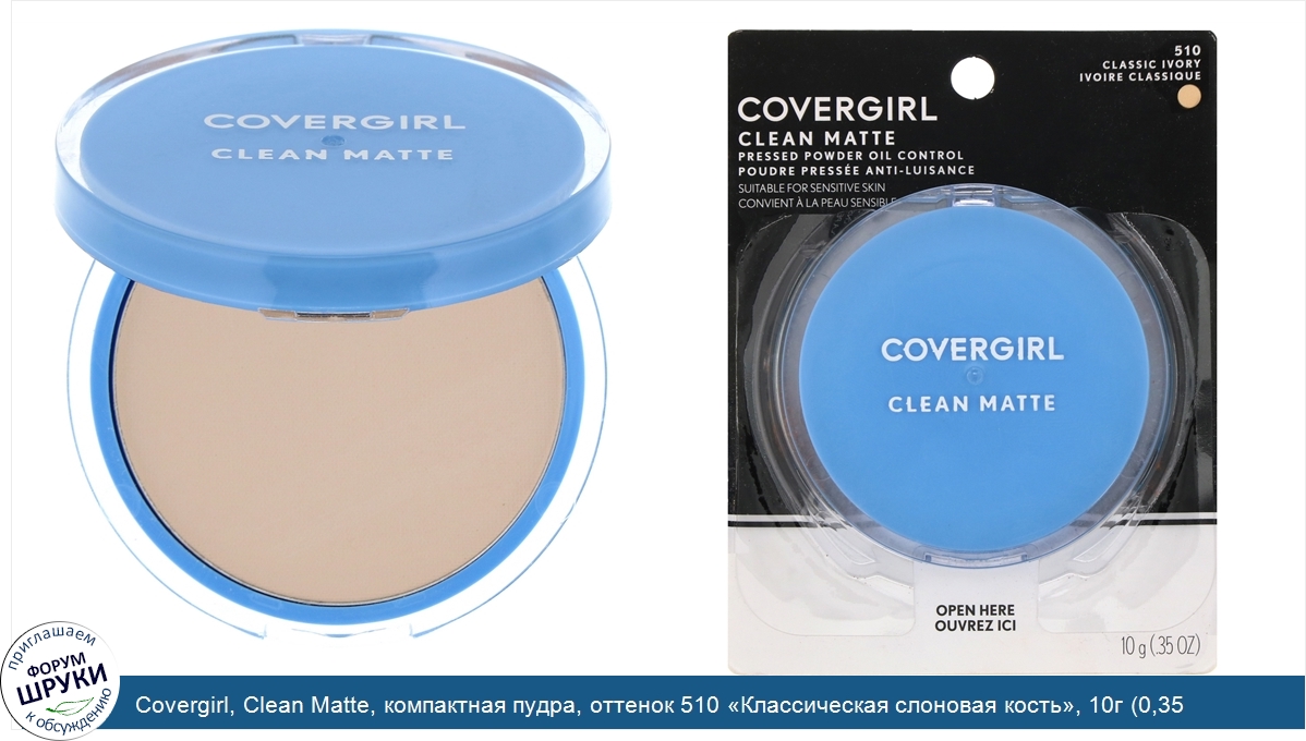 ru Covergirl, Clean Matte, компактная пудра, оттенок 510 «Классическая слоновая кость», 10г (0,35 унции)
