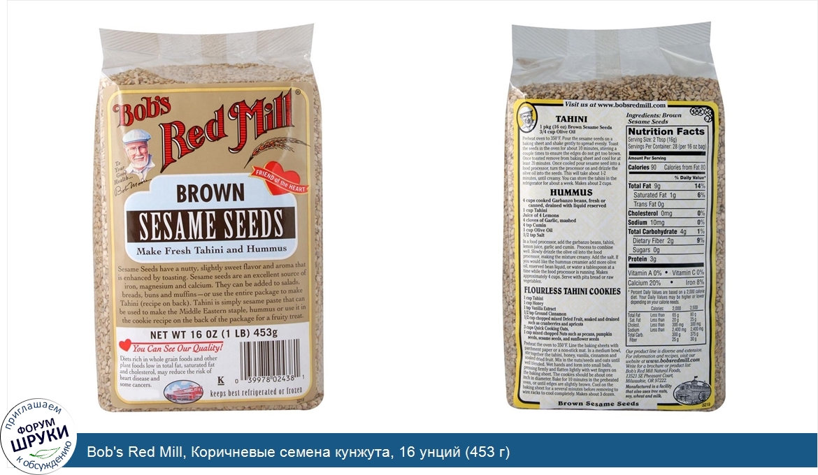 Друзья, если у вас есть отзыв/дополнение/комментарий/вопрос относительно Bob's Red Mill, Коричневые семена кунжута, 16 унций (453 г) - напишите его ответом в эту тему (это будет полезно всему сообществу в целом и вам в отдельности).
