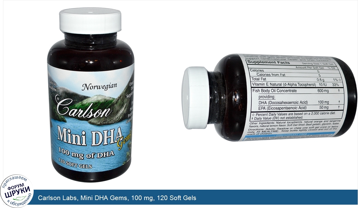 Друзья, если у вас есть отзыв/дополнение/комментарий/вопрос относительно Carlson Labs, Mini DHA Gems, 100 mg, 120 Soft Gels - напишите его ответом в эту тему (это будет полезно всему сообществу в целом и вам в отдельности).