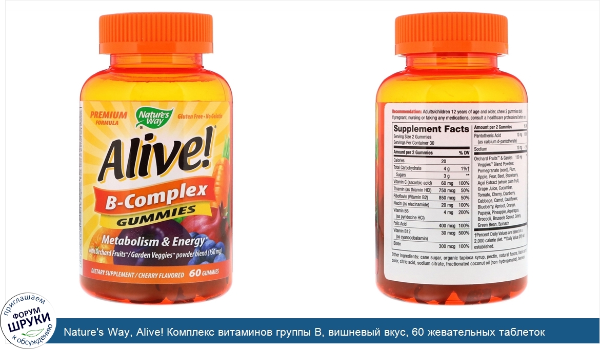 Друзья, если у вас есть отзыв/дополнение/комментарий/вопрос относительно Nature's Way, Alive! Комплекс витаминов группы В, вишневый вкус, 60 жевательных таблеток - напишите его ответом в эту тему (это будет полезно всему сообществу в целом и вам в отдельности).