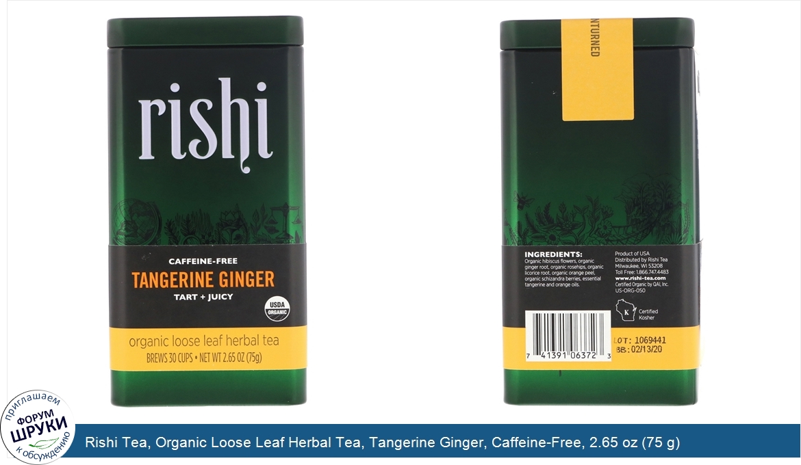 [DESCRIPT]No Leaf Unturned. Tart + Juicy. USDA Organic. Certified Organic by QAI. Certified Kosher. You don't think the same as everyone else, so why drink the same? Rishi teas are something else. Discover new teas and join us on our botanical journey to leave no leaf unturned. Tangerine Ginger: An uplifting, zesty tonic combining roots, fruits, and herbs. Taste: Bold, spicy ginger with juicy hibiscus + citrus. Origin: A unique Rishi blend. Caffeine Level: None.[/DESCRIPT]... (описание дополняется)