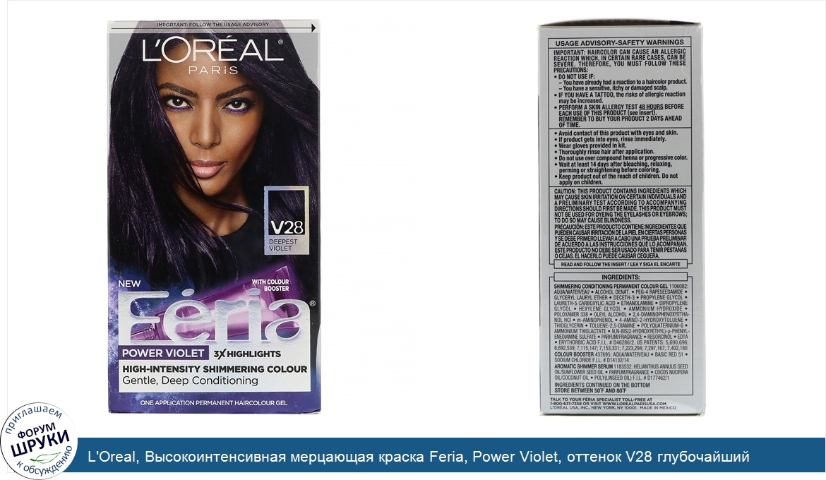 Друзья, если у вас есть отзыв/дополнение/комментарий/вопрос относительно L'Oreal, Высокоинтенсивная мерцающая краска Feria, Power Violet, оттенок V28 глубочайший фиолетовый, на 1 применение - напишите его ответом в эту тему (это будет полезно всему сообществу в целом и вам в отдельности).