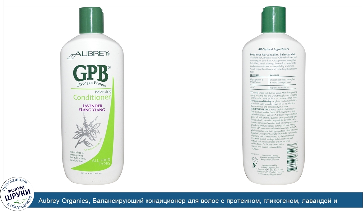 ru Aubrey Organics, Балансирующий кондиционер для волос с протеином, гликогеном, лавандой и иланг-илангом, 11 жидких унций (325 мл)