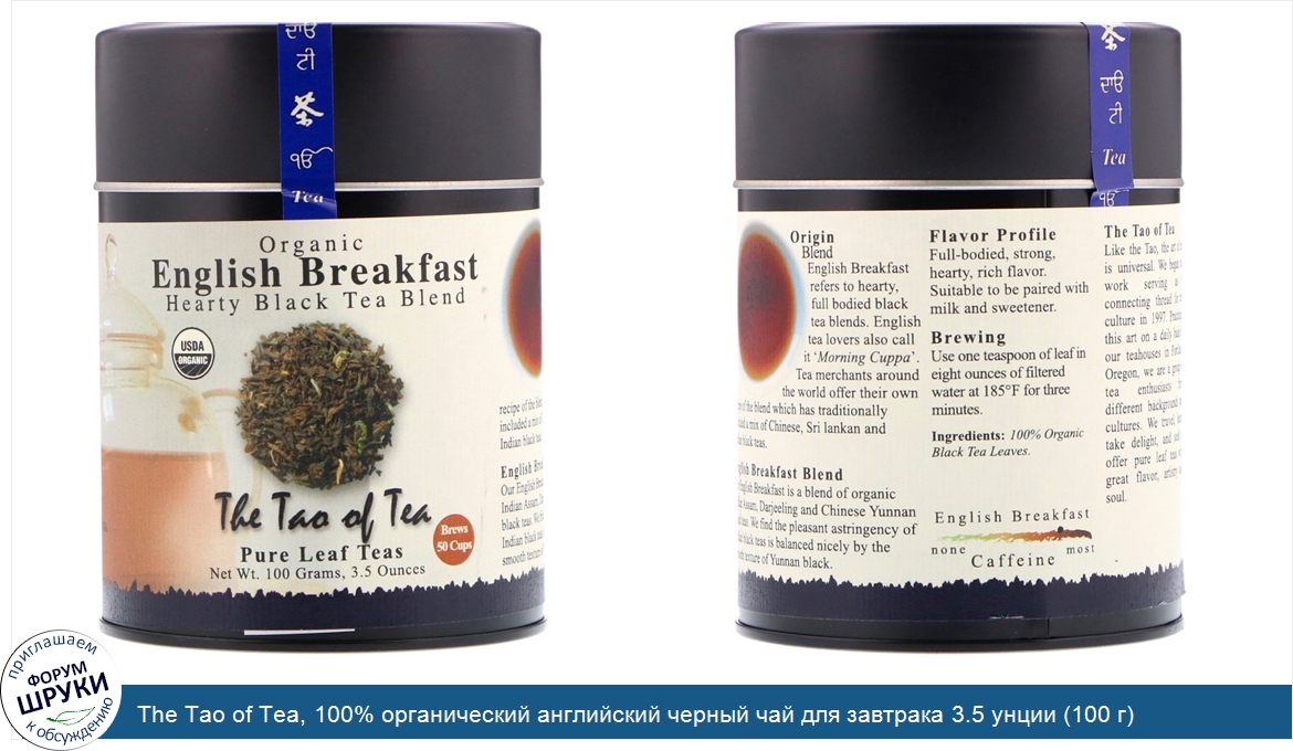 The Tao of Tea, 100% органический английский черный чай для завтрака 3.5 унции (100 г)