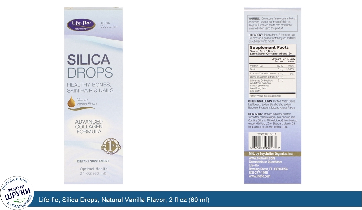 Друзья, если у вас есть отзыв/дополнение/комментарий/вопрос относительно Life-flo, Silica Drops, Natural Vanilla Flavor, 2 fl oz (60 ml) - напишите его ответом в эту тему (это будет полезно всему сообществу в целом и вам в отдельности).
