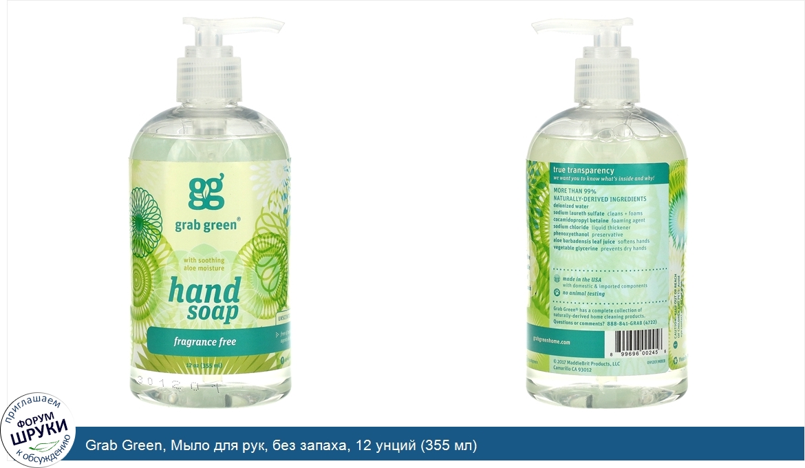 Друзья, если у вас есть отзыв/дополнение/комментарий/вопрос относительно Grab Green, Мыло для рук, без запаха, 12 унций (355 мл) - напишите его ответом в эту тему (это будет полезно всему сообществу в целом и вам в отдельности).