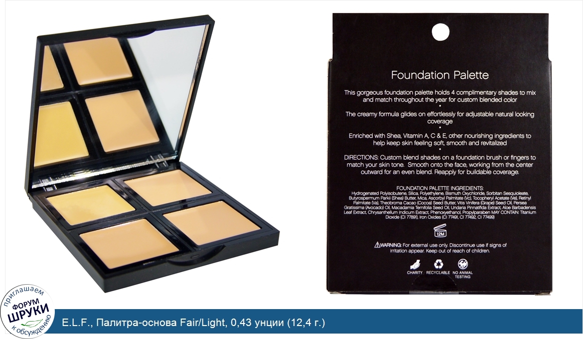 E.L.F., Палитра-основа Fair/Light, 0,43 унции (12,4 г.)
