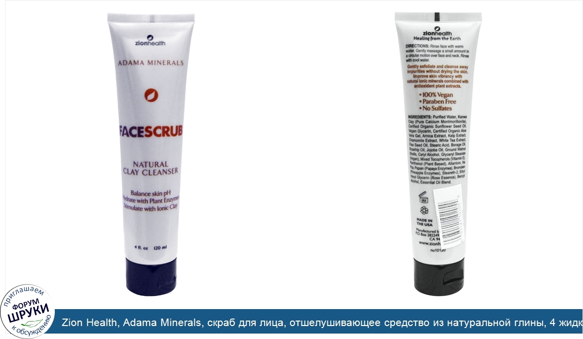Zion Health, Adama Minerals, скраб для лица, отшелушивающее средство из натуральной глины, 4 жидких унций (120 мл)