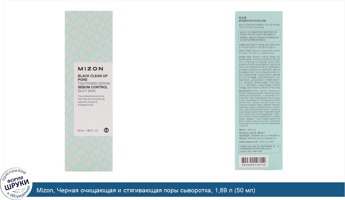 ru Mizon, Черная очищающая и стягивающая поры сыворотка, 1,69 л (50 мл)