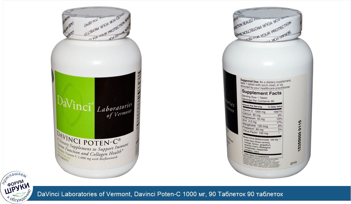 Друзья, если у вас есть отзыв/дополнение/комментарий/вопрос относительно DaVinci Laboratories of Vermont, Davinci Poten-C 1000 мг, 90 Таблеток 90 таблеток - напишите его ответом в эту тему (это будет полезно всему сообществу в целом и вам в отдельности).