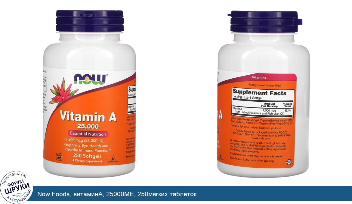 Друзья, если у вас есть отзыв/дополнение/комментарий/вопрос относительно Now Foods, витаминA, 25000МЕ, 250мягких таблеток - напишите его ответом в эту тему (это будет полезно всему сообществу в целом и вам в отдельности).
