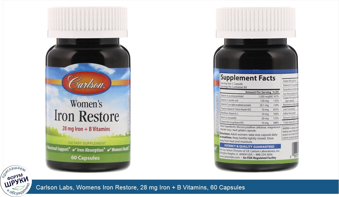 Друзья, если у вас есть отзыв/дополнение/комментарий/вопрос относительно Carlson Labs, Womens Iron Restore, 28 mg Iron + B Vitamins, 60 Capsules - напишите его ответом в эту тему (это будет полезно всему сообществу в целом и вам в отдельности).