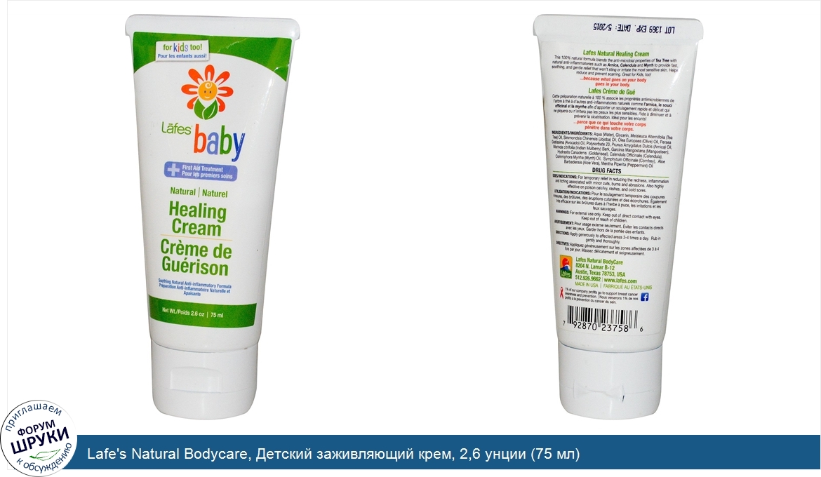 Друзья, если у вас есть отзыв/дополнение/комментарий/вопрос относительно Lafe's Natural Bodycare, Детский заживляющий крем, 2,6 унции (75 мл) - напишите его ответом в эту тему (это будет полезно всему сообществу в целом и вам в отдельности).