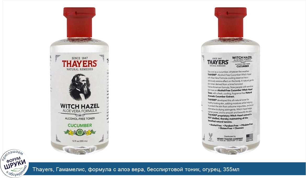 Друзья, если у вас есть отзыв/дополнение/комментарий/вопрос относительно Thayers, Гамамелис, формула с алоэ вера, бесспиртовой тоник, огурец, 355мл - напишите его ответом в эту тему (это будет полезно всему сообществу в целом и вам в отдельности).