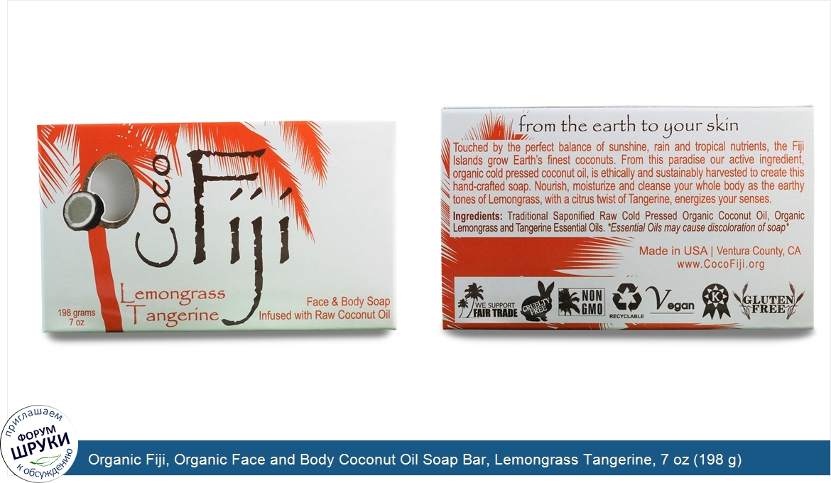 Друзья, если у вас есть отзыв/дополнение/комментарий/вопрос относительно Organic Fiji, Organic Face and Body Coconut Oil Soap Bar, Lemongrass Tangerine, 7 oz (198 g) - напишите его ответом в эту тему (это будет полезно всему сообществу в целом и вам в отдельности).