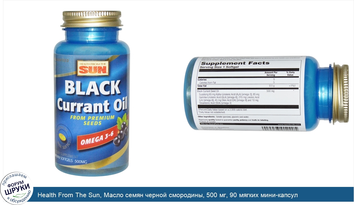 ru Health From The Sun, Масло семян черной смородины, 500 мг, 90 мягких мини-капсул