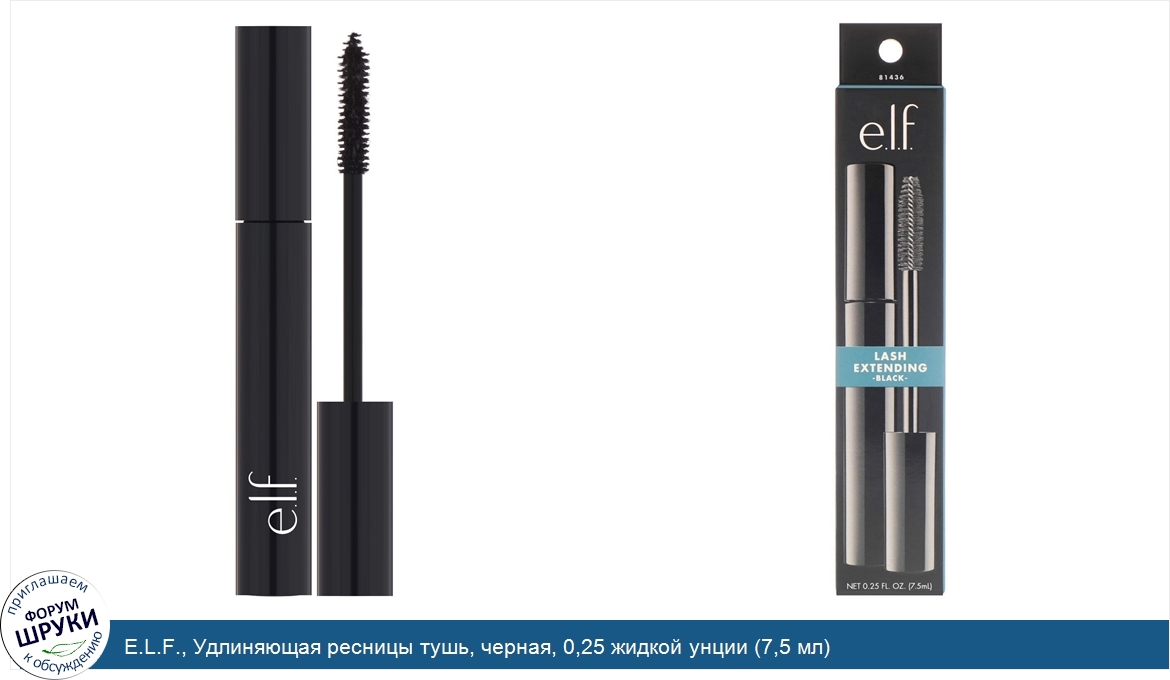 ru E.L.F., Удлиняющая ресницы тушь, черная, 0,25 жидкой унции (7,5 мл)