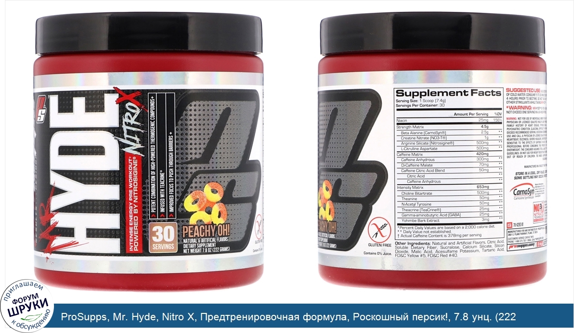 Друзья, если у вас есть отзыв/дополнение/комментарий/вопрос относительно ProSupps, Mr. Hyde, Nitro X, Предтренировочная формула, Роскошный персик!, 7.8 унц. (222 г) - напишите его ответом в эту тему (это будет полезно всему сообществу в целом и вам в отдельности).
