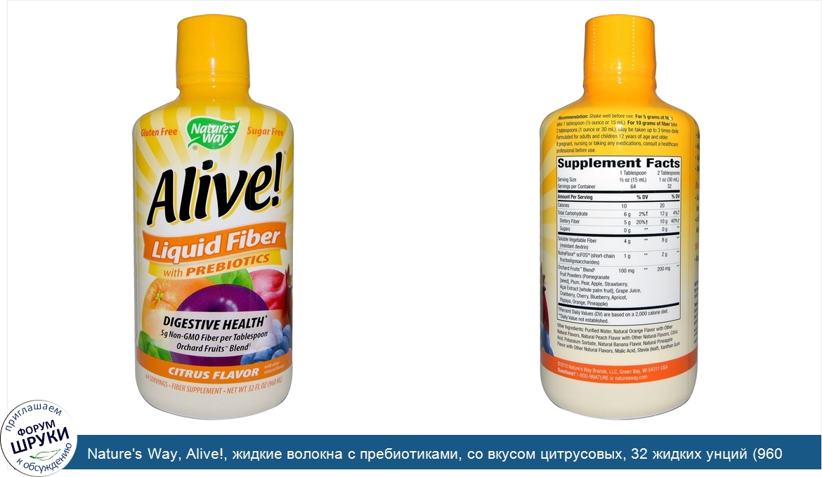 Друзья, если у вас есть отзыв/дополнение/комментарий/вопрос относительно Nature's Way, Alive!, жидкие волокна с пребиотиками, со вкусом цитрусовых, 32 жидких унций (960 мл) - напишите его ответом в эту тему (это будет полезно всему сообществу в целом и вам в отдельности).