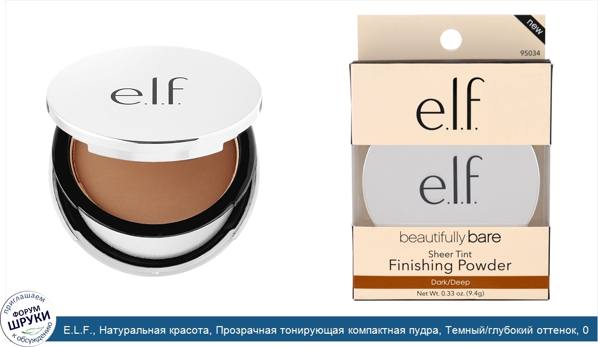 Друзья, если у вас есть отзыв/дополнение/комментарий/вопрос относительно E.L.F., Натуральная красота, Прозрачная тонирующая компактная пудра, Темный/глубокий оттенок, 0,33 унции (9,4 г) - напишите его ответом в эту тему (это будет полезно всему сообществу в целом и вам в отдельности).