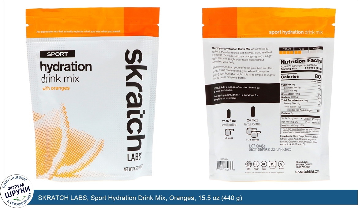 Друзья, если у вас есть отзыв/дополнение/комментарий/вопрос относительно SKRATCH LABS, Sport Hydration Drink Mix, Oranges, 15.5 oz (440 g) - напишите его ответом в эту тему (это будет полезно всему сообществу в целом и вам в отдельности).