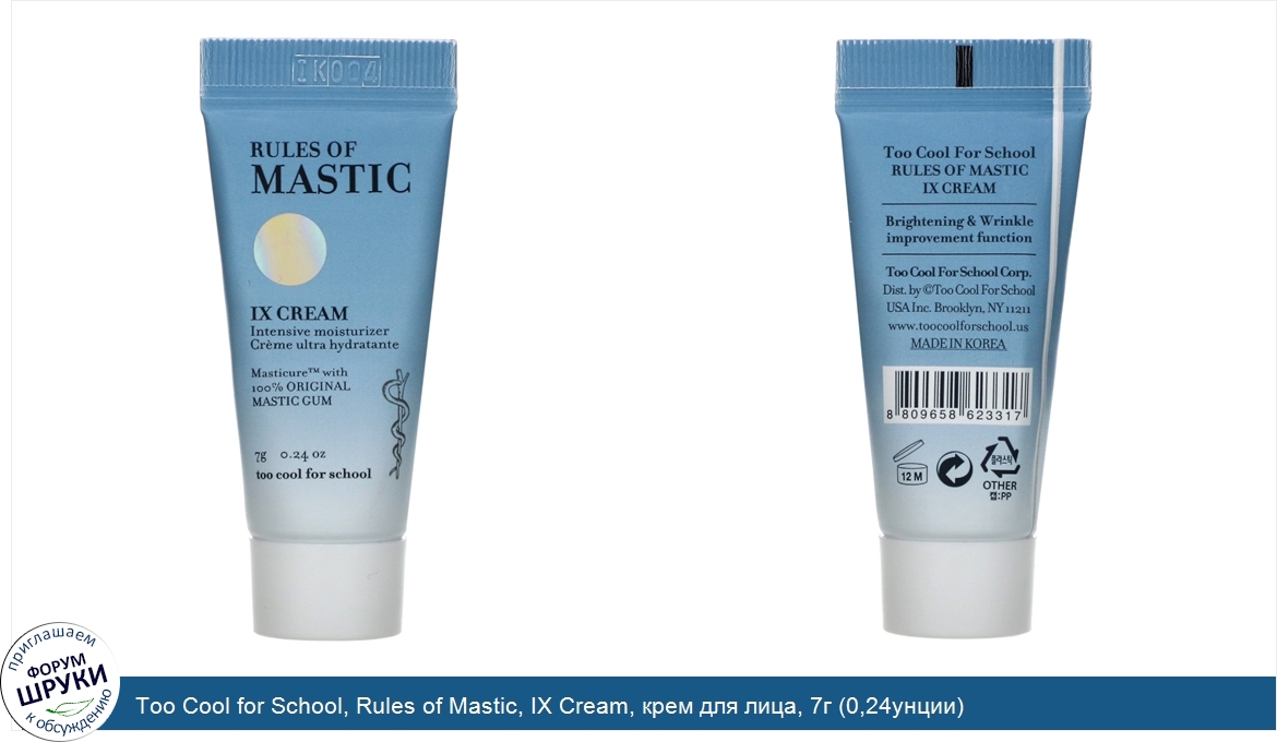 Too Cool for School, Rules of Mastic, IX Cream, крем для лица, 7г (0,24унции)