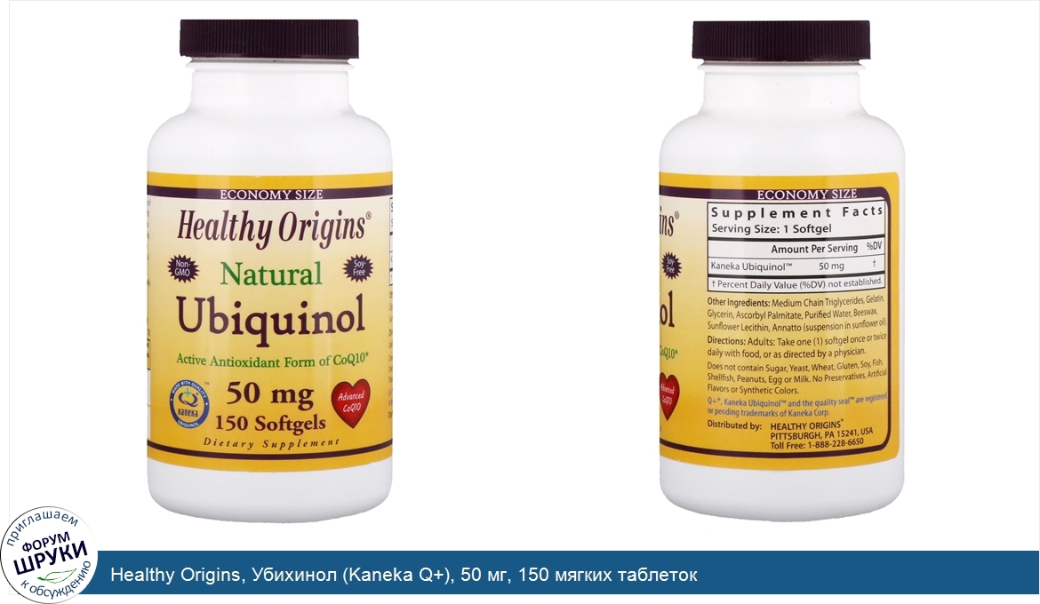 Друзья, если у вас есть отзыв/дополнение/комментарий/вопрос относительно Healthy Origins, Убихинол (Kaneka Q+), 50 мг, 150 мягких таблеток - напишите его ответом в эту тему (это будет полезно всему сообществу в целом и вам в отдельности).