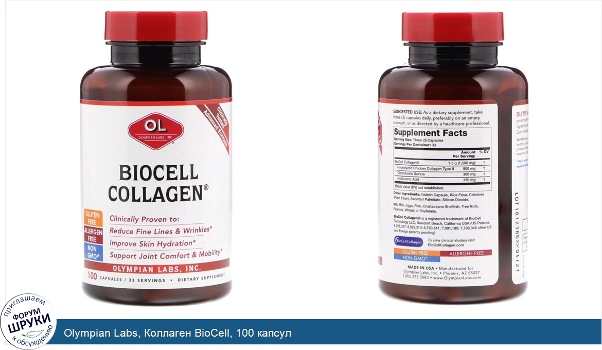 Olympian Labs, Коллаген BioCell, 100 капсул