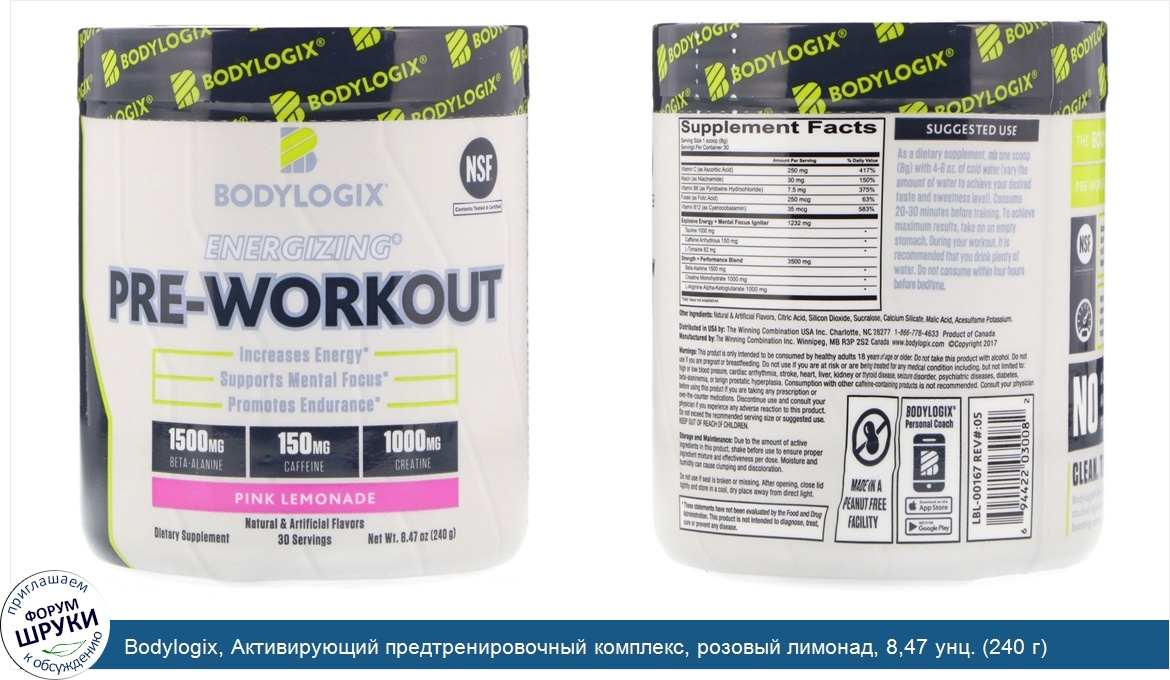 Друзья, если у вас есть отзыв/дополнение/комментарий/вопрос относительно Bodylogix, Активирующий предтренировочный комплекс, розовый лимонад, 8,47 унц. (240 г) - напишите его ответом в эту тему (это будет полезно всему сообществу в целом и вам в отдельности).