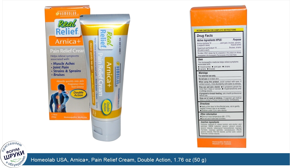 Homeolab USA, Arnica+, Pain Relief Cream, Double Action, 1.76 oz (50 g)