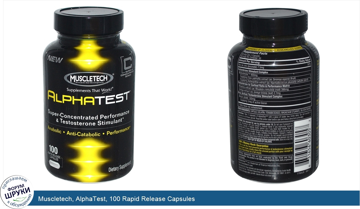 Друзья, если у вас есть отзыв/дополнение/комментарий/вопрос относительно Muscletech, AlphaTest, 100 Rapid Release Capsules - напишите его ответом в эту тему (это будет полезно всему сообществу в целом и вам в отдельности).