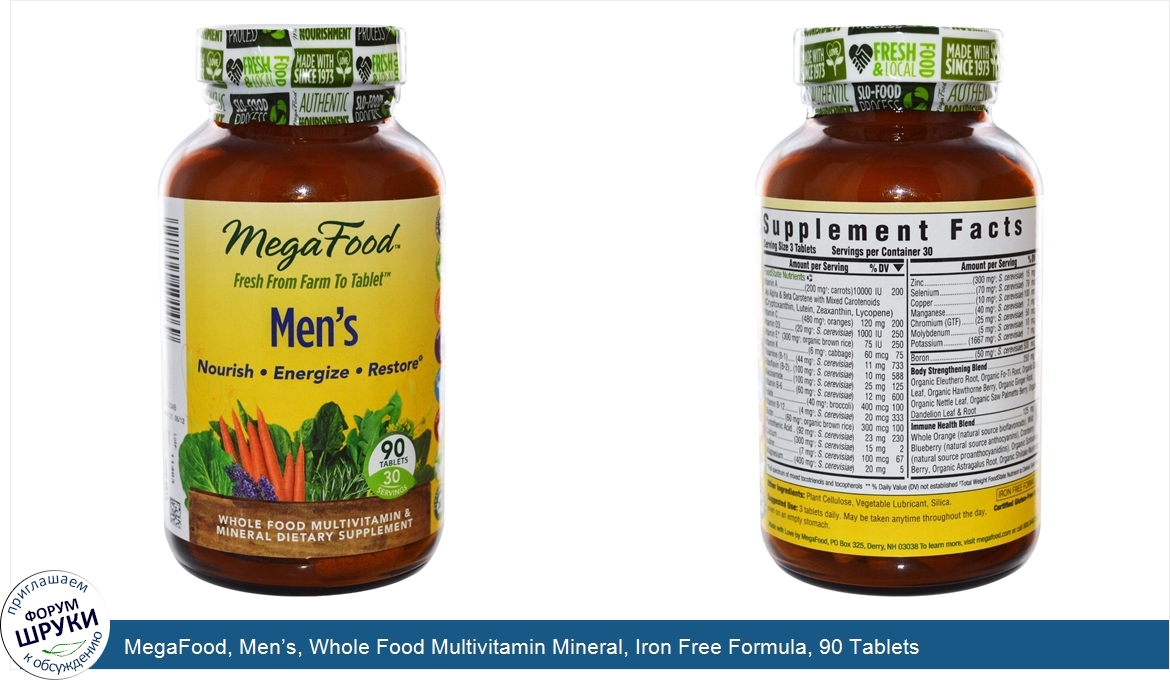 MegaFood, Men’s, Whole Food Multivitamin Mineral, Iron Free Formula, 90 Tablets