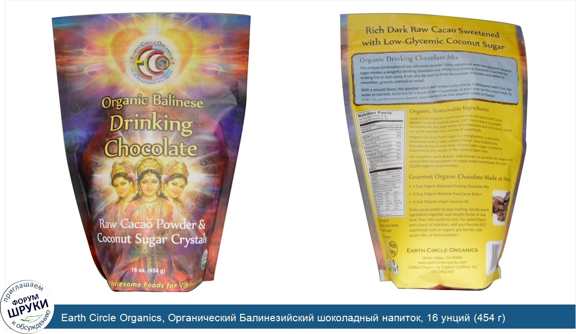 Earth Circle Organics, Органический Балинезийский шоколадный напиток, 16 унций (454 г)