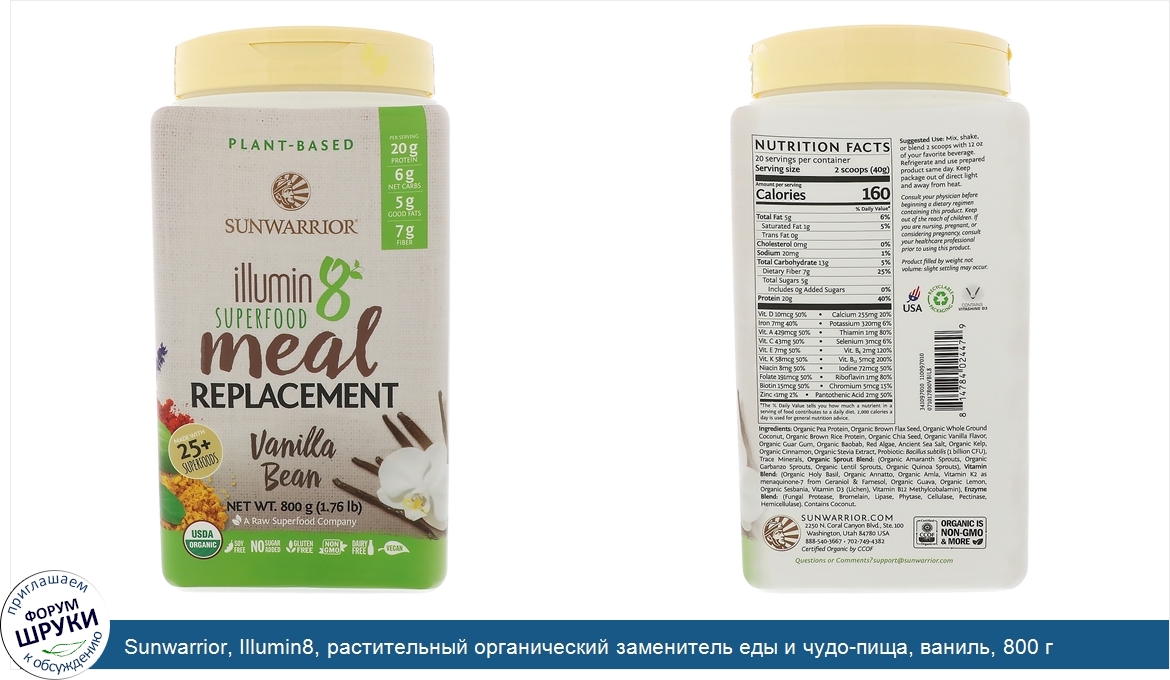 Друзья, если у вас есть отзыв/дополнение/комментарий/вопрос относительно Sunwarrior, Illumin8, растительный органический заменитель еды и чудо-пища, ваниль, 800 г - напишите его ответом в эту тему (это будет полезно всему сообществу в целом и вам в отдельности).