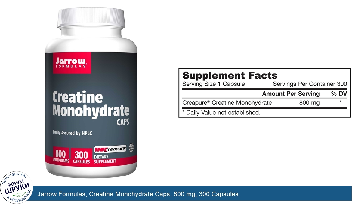 ru Jarrow Formulas, Creatine Monohydrate Caps, 800 mg, 300 Capsules