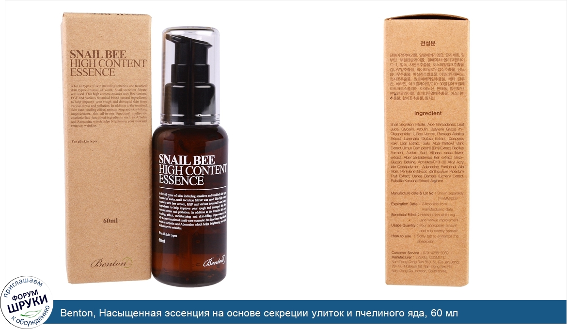 Друзья, если у вас есть отзыв/дополнение/комментарий/вопрос относительно Benton, Насыщенная эссенция на основе секреции улиток и пчелиного яда, 60 мл - напишите его ответом в эту тему (это будет полезно всему сообществу в целом и вам в отдельности).