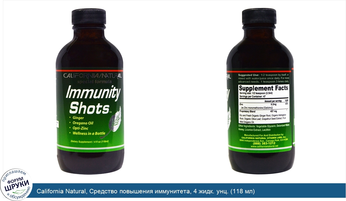Друзья, если у вас есть отзыв/дополнение/комментарий/вопрос относительно California Natural, Средство повышения иммунитета, 4 жидк. унц. (118 мл) - напишите его ответом в эту тему (это будет полезно всему сообществу в целом и вам в отдельности).