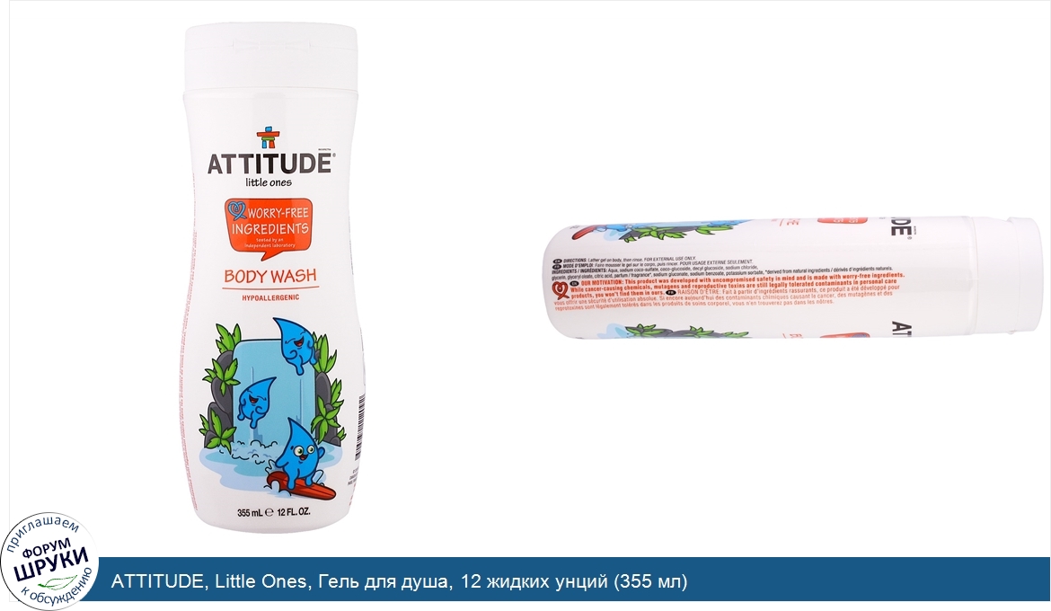 Друзья, если у вас есть отзыв/дополнение/комментарий/вопрос относительно ATTITUDE, Little Ones, Гель для душа, 12 жидких унций (355 мл) - напишите его ответом в эту тему (это будет полезно всему сообществу в целом и вам в отдельности).