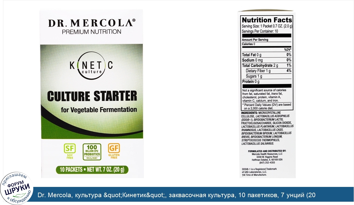 ru Dr. Mercola, культура "Кинетик", заквасочная культура, 10 пакетиков, 7 унций (20 г)
