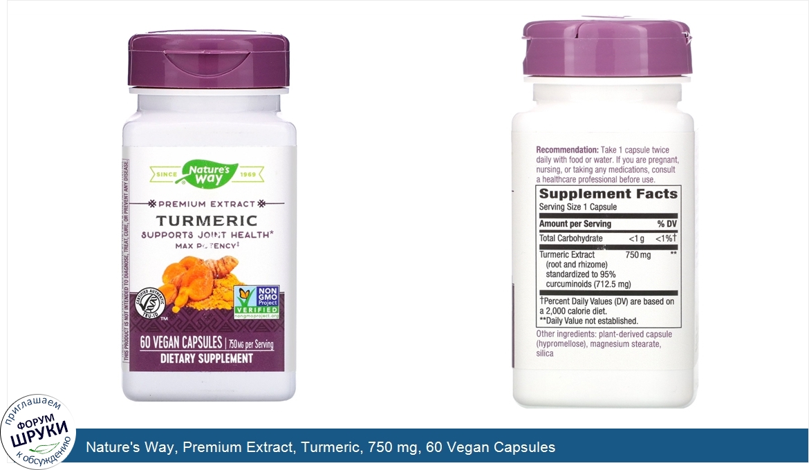 Друзья, если у вас есть отзыв/дополнение/комментарий/вопрос относительно Nature's Way, Premium Extract, Turmeric, 750 mg, 60 Vegan Capsules - напишите его ответом в эту тему (это будет полезно всему сообществу в целом и вам в отдельности).