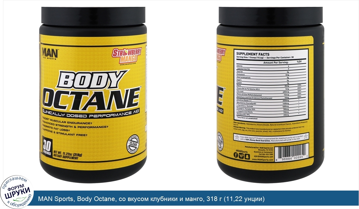 ru MAN Sports, Body Octane, со вкусом клубники и манго, 318 г (11,22 унции)