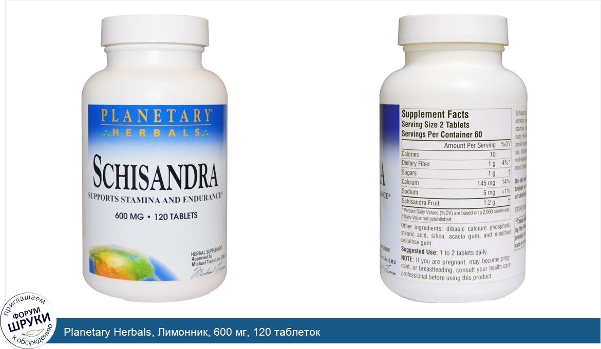 Друзья, если у вас есть отзыв/дополнение/комментарий/вопрос относительно Planetary Herbals, Лимонник, 600 мг, 120 таблеток - напишите его ответом в эту тему (это будет полезно всему сообществу в целом и вам в отдельности).