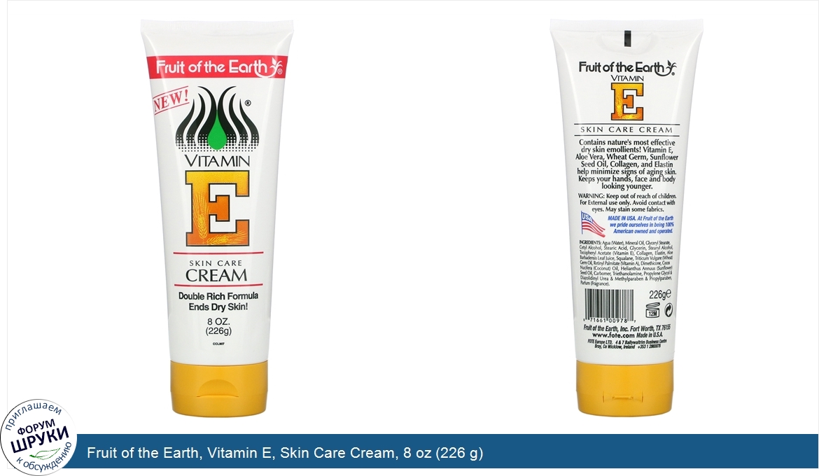 Друзья, если у вас есть отзыв/дополнение/комментарий/вопрос относительно Fruit of the Earth, Vitamin E, Skin Care Cream, 8 oz (226 g) - напишите его ответом в эту тему (это будет полезно всему сообществу в целом и вам в отдельности).