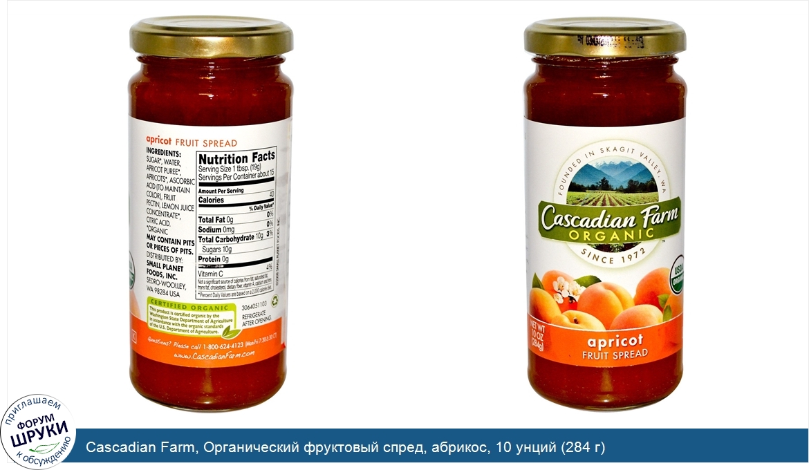ru Cascadian Farm, Органический фруктовый спред, абрикос, 10 унций (284 г)