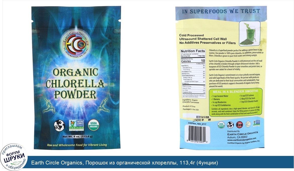 Друзья, если у вас есть отзыв/дополнение/комментарий/вопрос относительно Earth Circle Organics, Порошок из органической хлореллы, 113,4г (4унции) - напишите его ответом в эту тему (это будет полезно всему сообществу в целом и вам в отдельности).