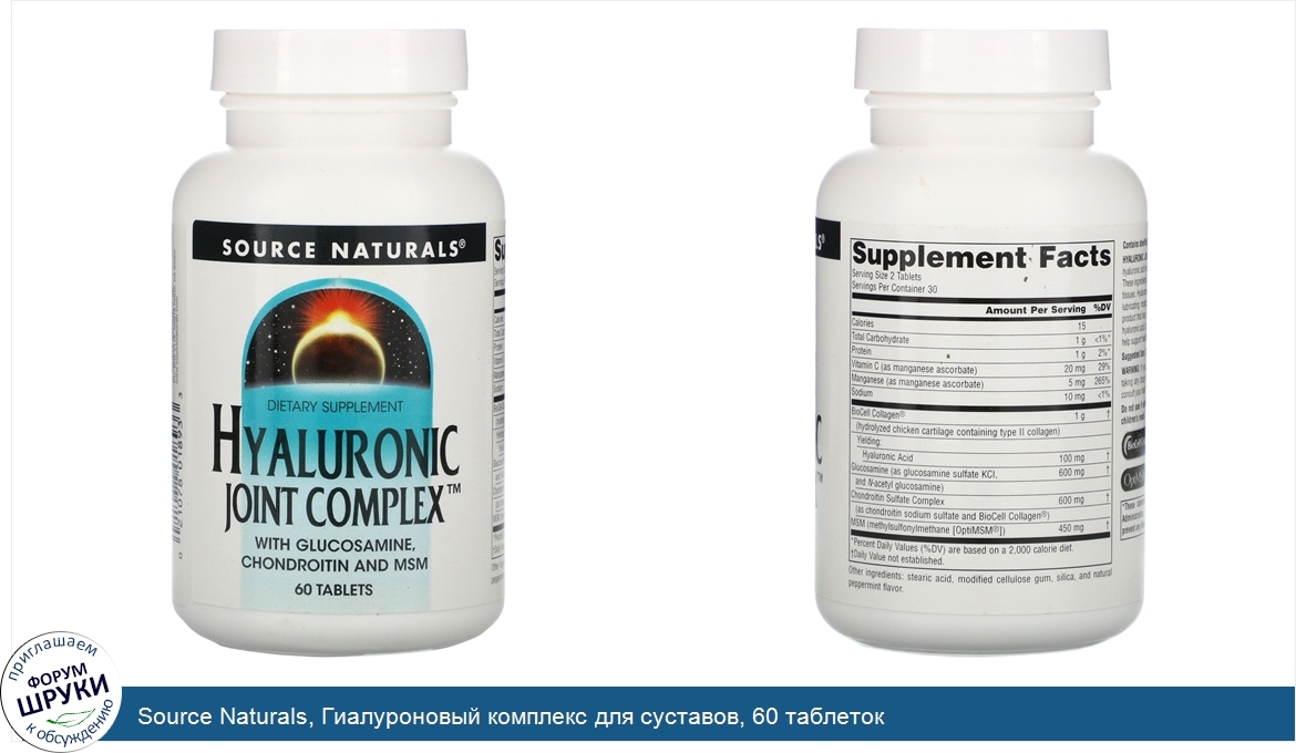 ru Source Naturals, Гиалуроновый комплекс для суставов, 60 таблеток