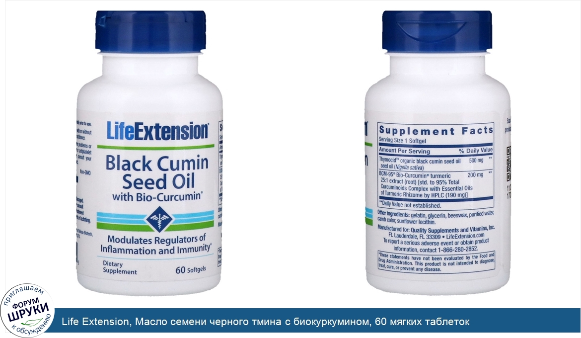 [DESCRIPT]Modulates Regulators of Inflammation and Immunity. Dietary Supplement. Non-GMO. Black Cumin Seed Oil helps maintain the balance between your body’s natural, healthy immune and inflammatory responses. Curcumin, an extract of turmeric, contains compounds that encourage immune health and help inhibit inflammation to support heart, brain and whole-body health. This formula has them both. Both turmeric and black cumin seed extracts support immune health. We’ve combined both in this convenient formula. Black Cumin Seed Oil and Bio-Curcumin® Benefits. Helps maintain the balance between your body’s natural, healthy inflammatory and immune responses. Helps inhibit inflammatory factors to promote whole-body health and immune system function. Supports optimal immune system function and helps maintain immune system health over time. Managing immune and inflammation response are both critical for maintaining your health. Finding a way to balance these two aspects of your physiology is essential. Black cumin seed oil, with its wide range of active compounds, has been shown to help maintain the healthy balance between your body’s natural inflammation response and immune health. Combining black cumin with turmeric. Curcumin is an extract of turmeric. It is a potent nutrient packed with compounds called curcuminoids known to inhibit inflammation to support heart and joint health, as well as encourage a healthy immune response.17-21 Bio-Curcumin® contains ultra-potent BCM-95®, a curcumin extract found to be up to seven times more absorbable than standard curcumin in a clinical study. Supports a healthy inflammatory response. Black cumin seed oil has been shown to support the body’s healthy inflammatory response by moderating the effect of critical cell-signaling chemicals and hormone-like messengers. Maintaining healthy cell signaling as you age is key to both a healthy inflammatory response as well as immune system function. Curcumin turmeric extract promotes the body’s healthy inflammatory response as well. Curcumin also inhibits the metabolism of arachidonic acid, as well as the activities of cyclooxygenase, lipoxygenase and cytokines. Doing so supports heart health, brain health, and a healthy, system-wide balance. Boosts the immune system. Black cumin seed oil also supports the body’s natural defenses by encouraging optimal function of a healthy immune system. It does this by helping to maintain the vital defensive activities of macrophages and helper T-cells that work together to bolster your immune system. Curcumin further promotes immune system health. Two essential functions in one supplement. Black Cumin Seed Oil and Bio-Curcumin® from Life Extension® helps you maintain a healthy immune system and promotes a healthy inflammatory response with a single supplement.[/DESCRIPT]... (описание дополняется)