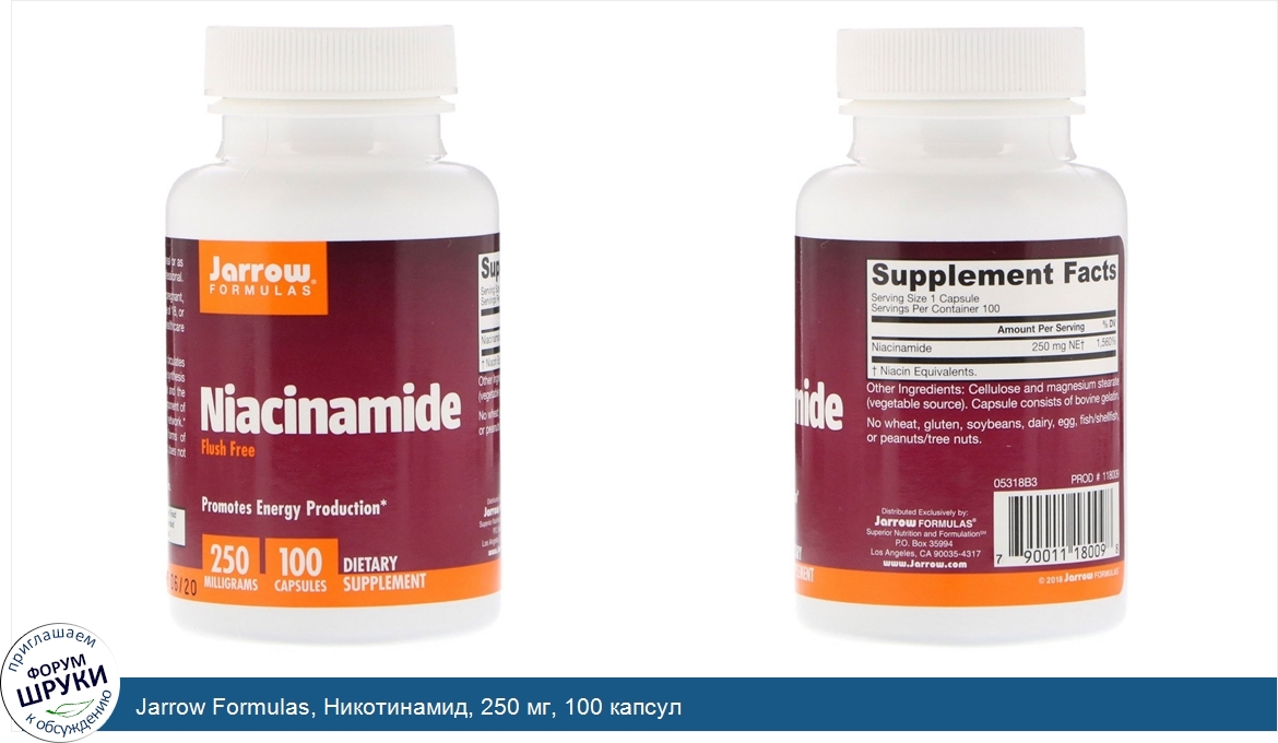 Jarrow Formulas, Никотинамид, 250 мг, 100 капсул
